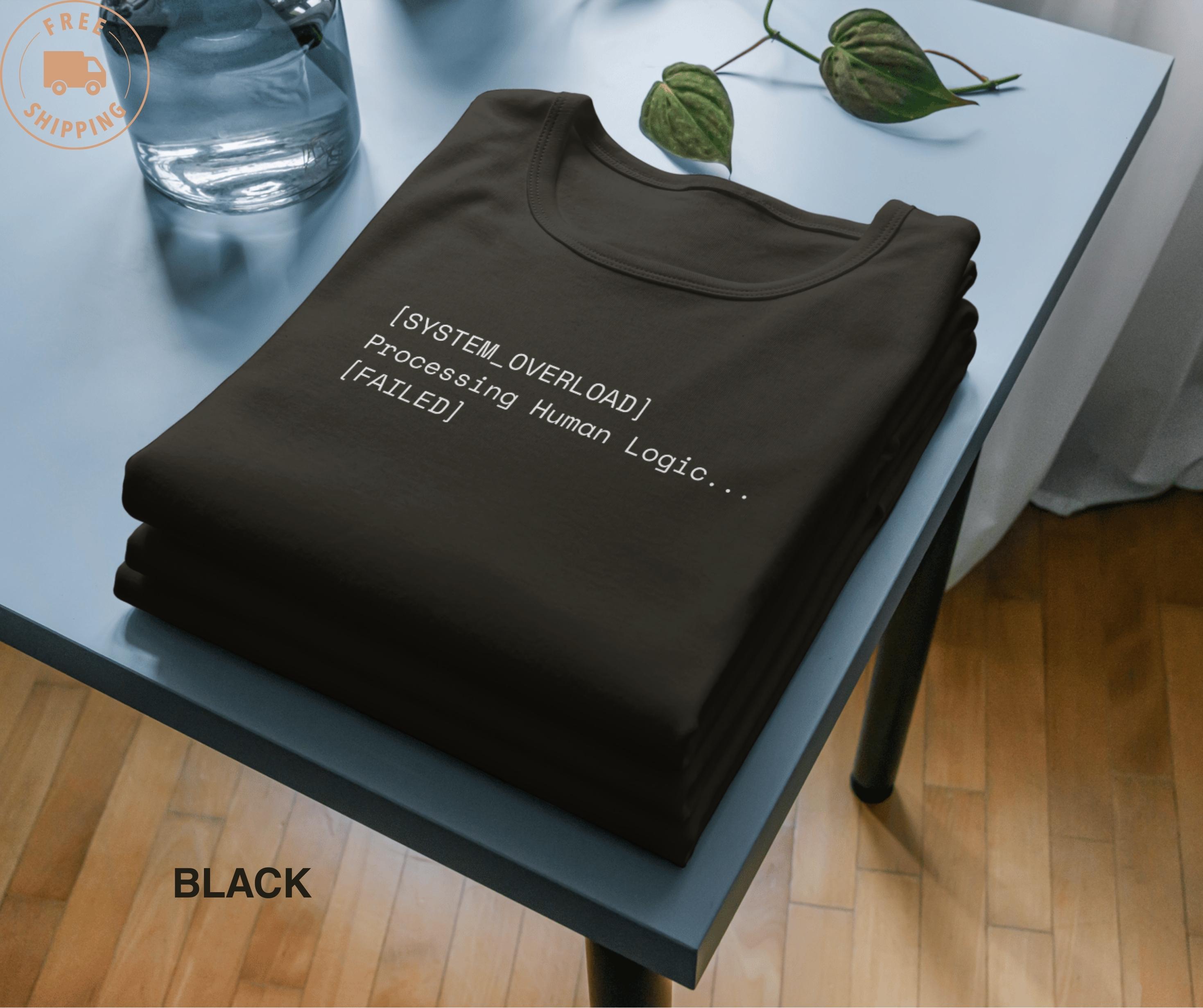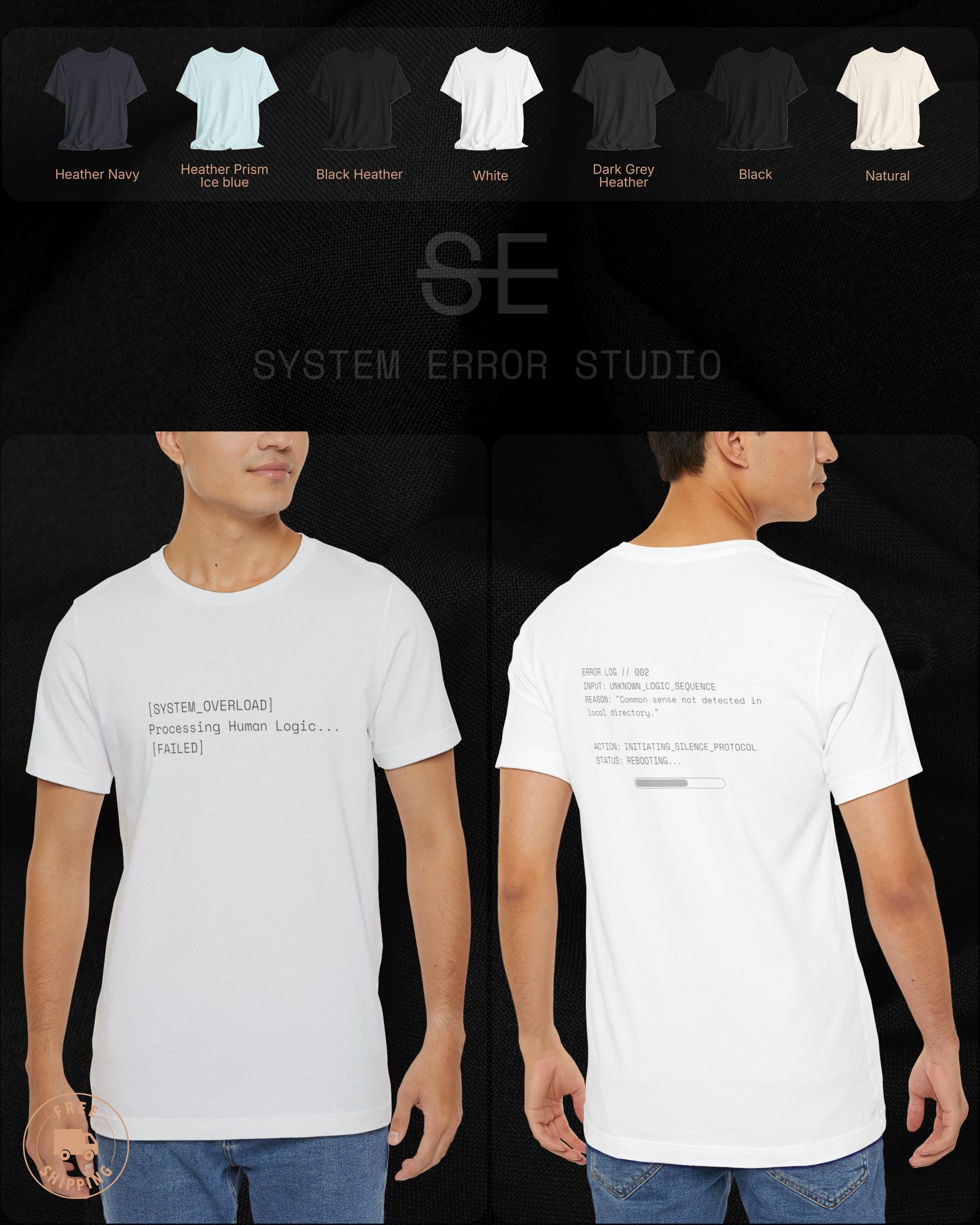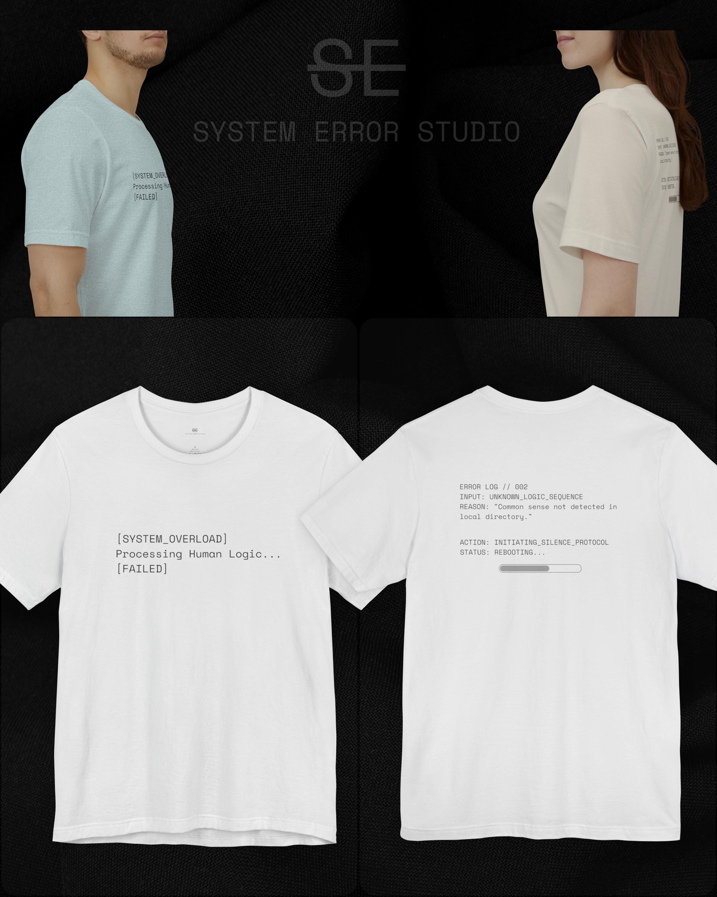Sometimes human logic just doesn't compute. This "[SYSTEM_OVERLOAD]" tee is the perfect uniform for when the world is glitching and your patience is at 0%.